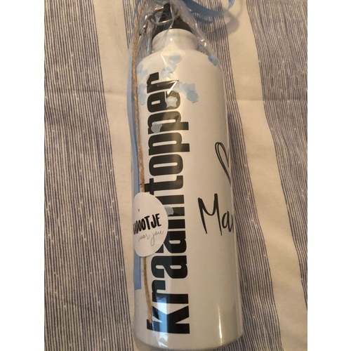 Ik heb een ‘kraamtopper’ waterfles besteld via www.skuur24.nl. Super (spoed)service na even een whatsappje en binnen 18 uur bezorgd! 😳 Kwam een kaartje bij met ‘de beste kraamverzorgster ben jij’!