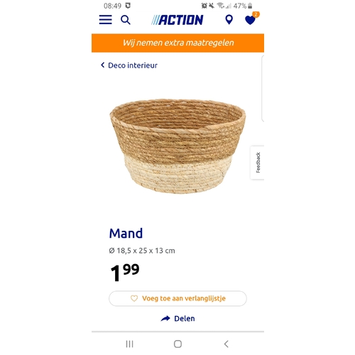 Ben nog op zoek naar leuke manden liefst in de kleur roest of terra (zelfde kleur?) dat matcht bij ons hemeltje. Had eerst m'n zinnen gezet op de witte van de action maar kon ze de laatste keer niet meer in de winkel vinden 😔