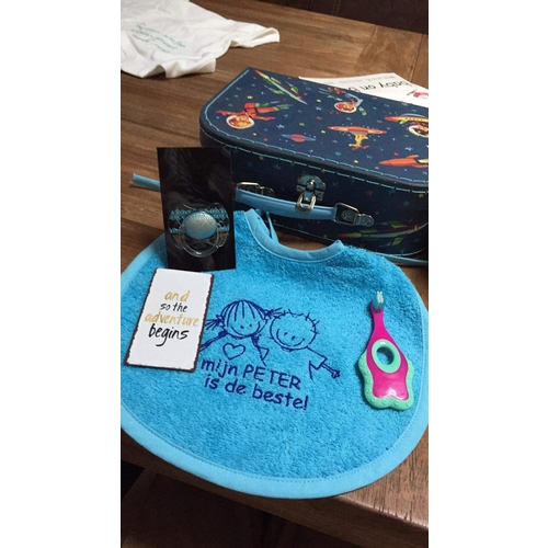 Voor de peter hadden wij een bierpakket met allemaal speciale bieren (deugeniet, slaapmutsje, ...) die verwijzen naar een baby. Bij het bierpakket zat dan een kaartje met de vraag op.