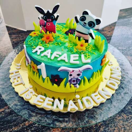 Taarten met fondant enzo zijn leuk maar ervaring leert dat die fondant vaak toch niet wordt opgegeten dus dan maar liever zo