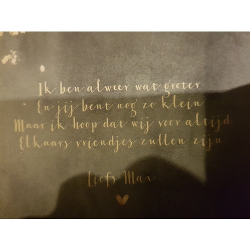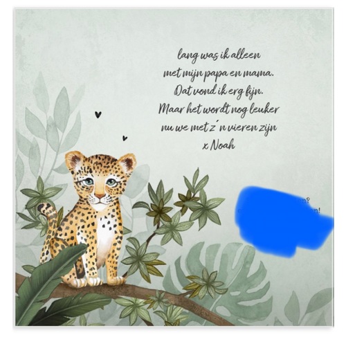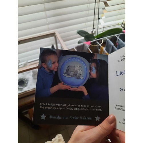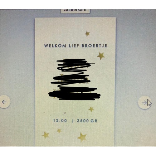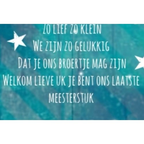 Wij zetten "broertje/zusje van Jaxx" met een gouden ster achter Jaxx, op het kaartje. Ons zoontje is overleden.