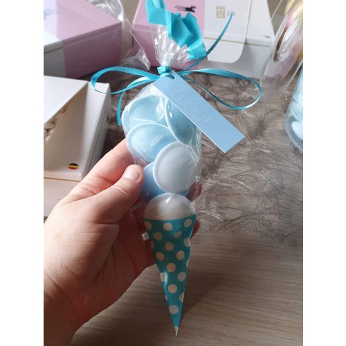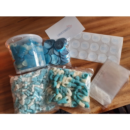 Deze van Ali en daar komen blauwe witte hartjes snoepjes in