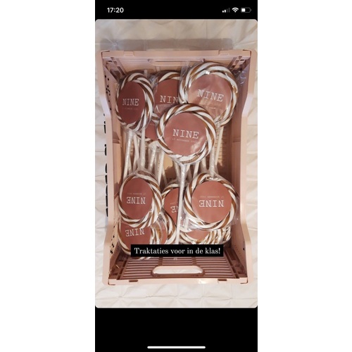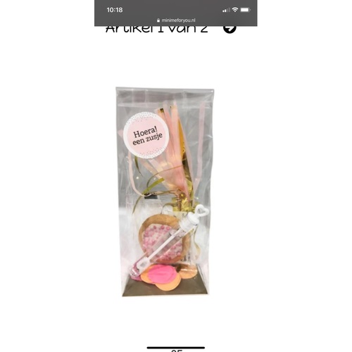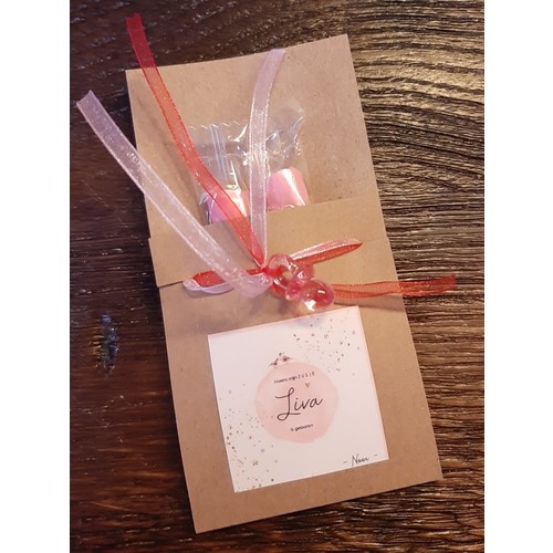 2 roze zuurstokjes er in, strikje met een speentje er ...