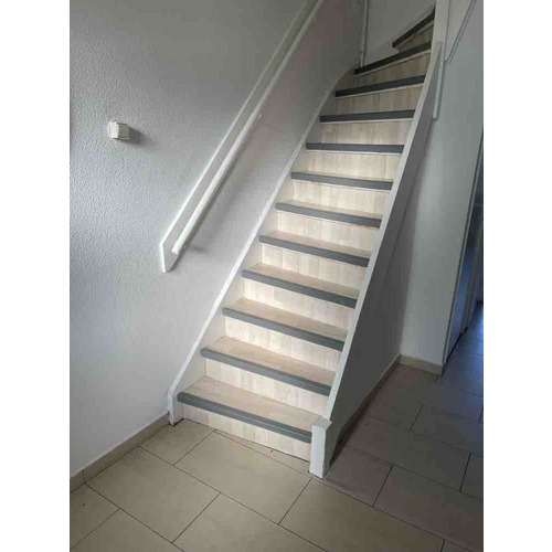 Misschien zoiets? Dan kan die om de trap heen en aan de muur vastgezet.