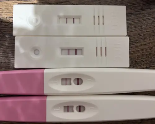 In juni dit jaar een miskraam moeten opwekken ivm een lege vruchtzak, toen wel echt knal testen gehad, nu teste ik 9 november voor het eerst licht positief, ik ben nu 4.4 en dit zijn mijn testen, wat vinden jullie??