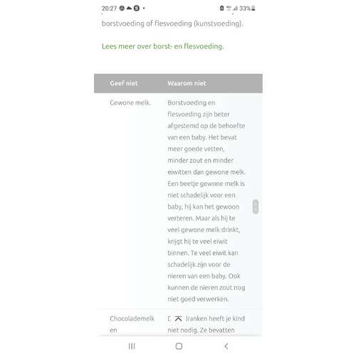 Ik denk dus dat daar de meningen over verdeeld zijn (daarom geef ik het zelf ook niet). De uitleg erbij is ook niet 'geef niet' (er staat letterlijk dat een beetje gewone melk niet schadelijk is voor een baby). Dus een ieder kan dan zelf bepalen wat je met de info wilt doen...