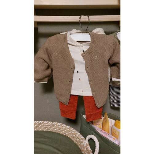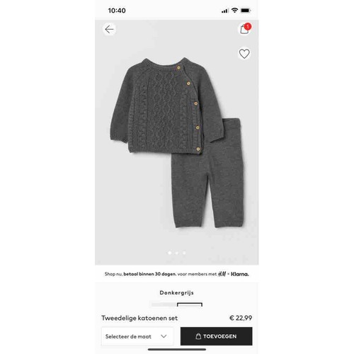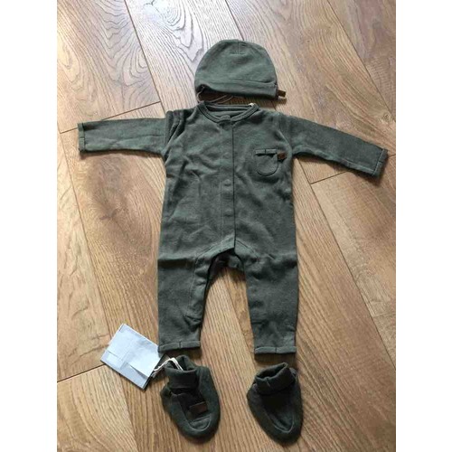 Wij hebben deze van de H&M in maat 56, alleen dan in het beige, maar die is niet meer verkrijgbaar. Echt een enig pakje en we hebben er een los katoenen mutsje bij.