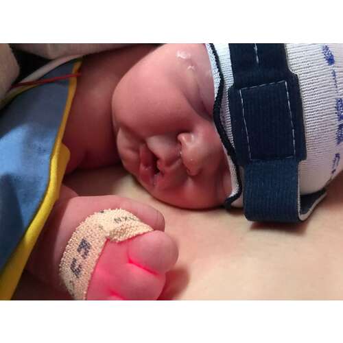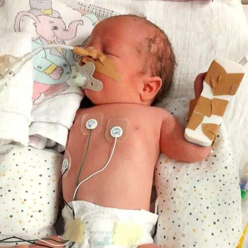 Flinke baby voor prematuur kindje. Gelukkig is in dit geval dit alleen maar voordelig. Zal nog wel poosje in couveuse in het ziekenhuis moeten liggen.