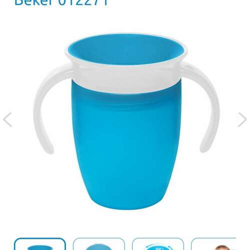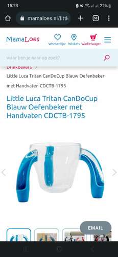 Deze heb ik, en het werkt heel goed! Zoon pakt de handvatten met twee handen vast en brengt de beker naar zijn mond terwijl ik ook nog een handvat vast kan pakken zodat het niet helemaal over hem heen komt. Hij krijgt best een paar slokjes binnen zo. Ik heb 'm bij Babydump gekocht.