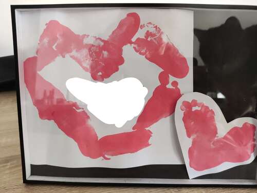Ik had voor vaderdag een fotolijstje gegeven met daarin een papier waar een hartje op stond met haar voetjes.