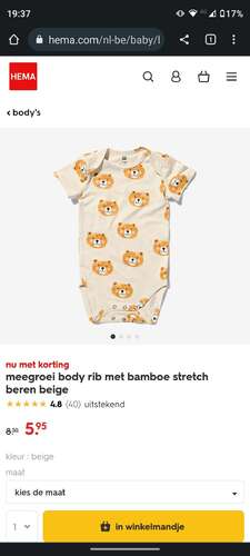Voor kleertjes let ik er ook wel op dat er stretch in zit, vooral voor T-shirts. JBC en Hema zijn hier favoriet. Een t-shirt zonder stretch is hier nogal snel te klein, zoals C&A.