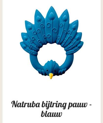 "Natruba bijtring pauw - blauw - Baby's & Bijters" https://www.babysenbijters.nl/p/natruba-bijtring-pauw-blauw
