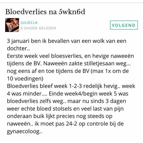 Ben 7 weken geleden bevallen en vloei nog wat donkerbruin. Vooral als ik te ...