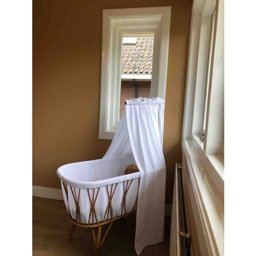 Wij hebben deze oude familiewieg. Is helemaal opnieuw bekleed met katoenen stof (hemeltje ook) en zit een nieuw matrasje in. Dit mag gewoon. De ruimte tussen spijlen was te groot dus er moest sowieso bekleding komen.