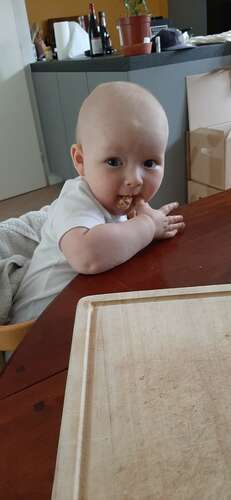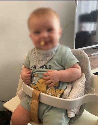Hier hebben we rond 6 maanden de babyset erop gezet. Dit omdat de kleine ook brood ging oefenen en zo beter rechtop zat. Liggen was ook niet meer zo zijn ding want trok zichzelf steeds wat omhoog.