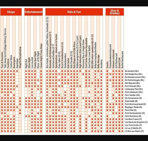 Ze zijn allemaal zo ongeveer hetzelfde, het maakt niks uit. Ik heb net gegoogled op ' schema faciliteiten centerparcs.'. Dan zie je een blauw schema met blauwe bolletjes. En dan zie je welk park wat heeft.