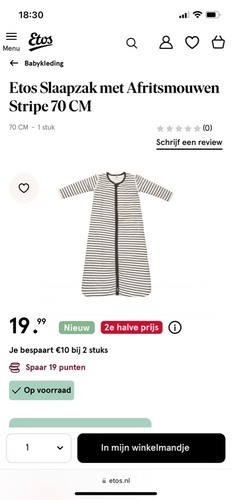 Etos! Is wel 1,5 maar is echt wel lekker voor nu. Is met mouwen en lekker basic 😊 Ik heb hem jn maat 90 en hij is heerlijk zacht. Het randje is trouwens groen.