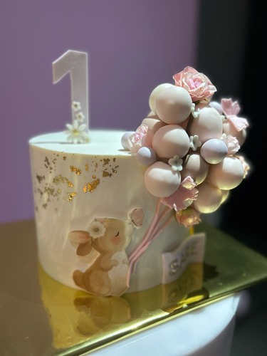 Dit was de cakesmash taart van mijn dochter, hij zag er na de smash nog bijna hetzelfde uit, alleen wat van de crème gesnoept..met haar verjaardag krijgt ze een klein boltaartje in hetzelfde thema als de gewone taart.. ik heb het geluk dat mijn moeder thuisbakker is😊