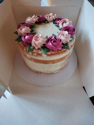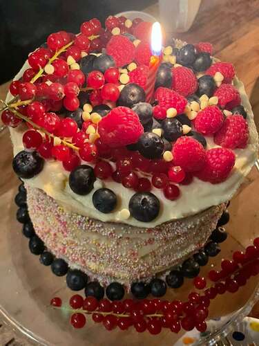 Hier gewoon hema taart en zoon krijgt een stukje slagroomtaart want vind het zonde om hem in een complete taart te laten slaan