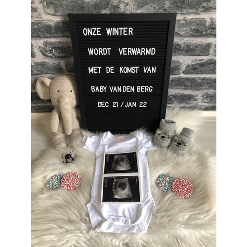 Wij hebben op de dag dat wij er zelf ook achter zijn gekomen een luier ingepakt voor de opa’s en oma’s met een kaartje en de tekst: voor deze luier ben ik nog te klein maar als die past willen jullie dan onze opa en oma zijn? En na de eerste echo met 7 weken deze foto gemaakt en via whatsapp naar alle belangrijke familie, vrienden en kennissen gestuurd zonder er iets bij te zeggen ☺️ alleen maar super leuke reacties gehad