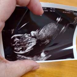 Onze grote Deense dog, heel onhandig, lijkt net voorzichtiger. Hij kwam vaak naast me staan en dan met zijn kop tegen mijn zij of buik duwen. Nu duwt hij niet meer legt het er eerder gewoon tegen. Geen idee of hij al iets door heeft want meestal is hij niet de slimste in huis... 馃ぃ馃檲
