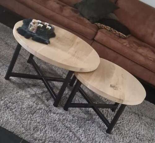 Ik heb deze 2 tafels van zwaar eikenhout laten maken toen mijn oudste zichzelf ging optrekken. Deze tafeltjes zijn, denk ook door de pootjes, nog nooit omgevallen op het moment van optrekken. Hopelijk krijgt de jongste het straks ook niet voor elkaar 馃構