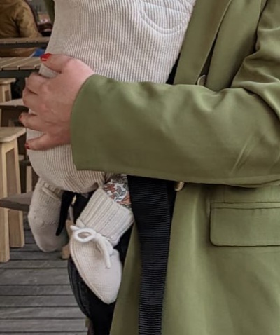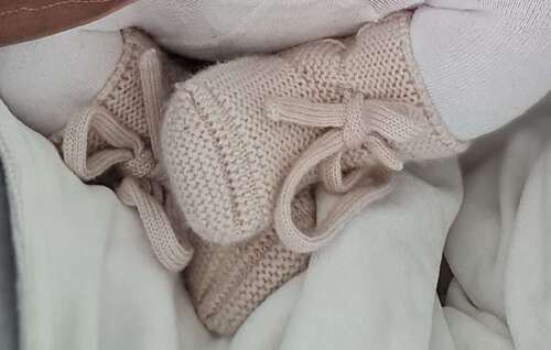 Ook nieuwe gebreide slofjes, gemaakt door de oudtante van mijn schoonzusje, onze babies schelen 6weken en ze houdt van breien.
