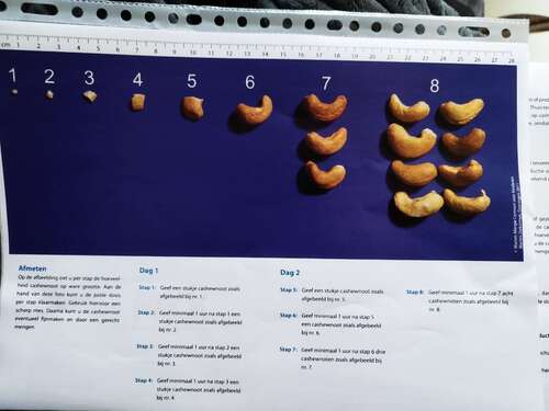 Hazelnoot was verhoogd en hebben we ook provocatietest voor gehad. Nu zelf thuis de amandel en cashew. Voor cashew en amandel heb ik schema meegekregen over hoe te introduceren.