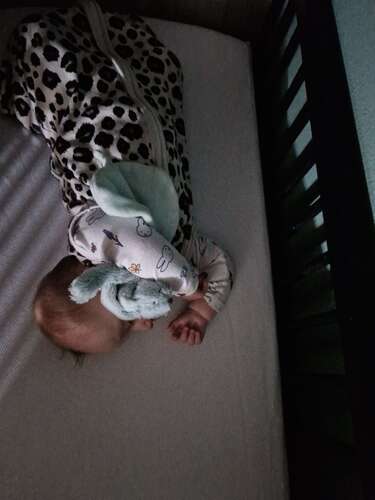 Onze dochter beweegt ook het hele bedje door, van voor naar achter, op de zij, op de buik. Ik laat haar lekker liggen zoals ze zelf fijn vindt, maar wel alleen in slaapzak. Vind het toch een eng idee dat ze onder een laken terecht kan komen.