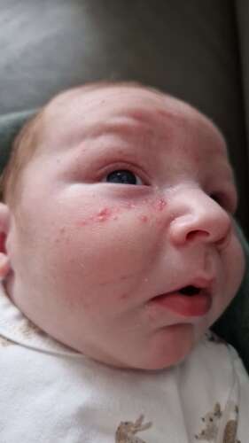 Vind het zo zielig en jammer. Ze had zo een mooi gaaf huidje en knap koppie( zeg je natuurlijk over je eigen kind hihi) . Zo jammer dat dit nu is ook voor haar germ