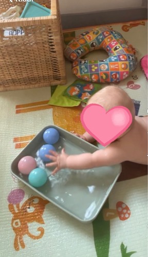 Dit is van paar maanden geleden, maar drijven in een waterbak is ook een dikke hit hier