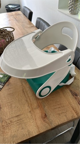 Wij hebben deze. Moet zeggen dat we nog bij niemand zijn geweest sinds hij zelfstandig kan zitten (sinds een week of 2). Maar kan los en op een reguliere eetstoel