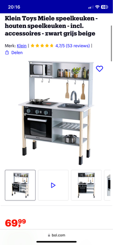 Ben ook opzoek naar een keukentje. Ik vond deze wel mooi en erg goedkoop: https://www.bol.com/nl/nl/p/theo-klein-miele-houten-speelkeuken-met-accessoires/9200000109553015/?Referrer=ADVNLGOO002027-S--9200000109553015&gad_source=1&gbraid=0AAAAAD5OnmOL1Qm9SaZj8H4geNjIq5Keg&gclid=CjwKCAiAqNSsBhAvEiwAn_tmxQ1QFl0h5uLZe13CiRxxIl_JdeUIyE5XZqXNIXu55Pf-AskhlSYUJxoCnX4QAvD_BwE