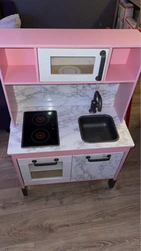Wij hebben deze vorige week aan ons zoontje gegeven. Ik vind het een leuke, simpele en niet al te grote keuken. Zit licht en geluid in het fornuis. Was ook makkelijk in elkaar te zetten. Wel wat aan de hoge kant. Wij hebben de zwarte dingen van de poten gelaten zodat hij wat lager is.