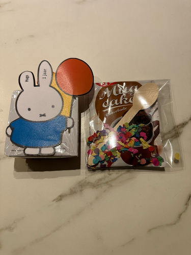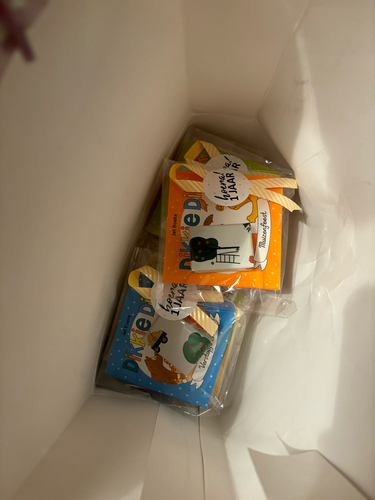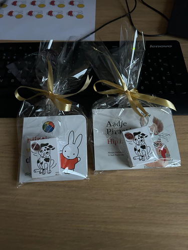 Voor de kindjes een uitdeelboekje van Nijntje met knijpfruitje erop geplakt.