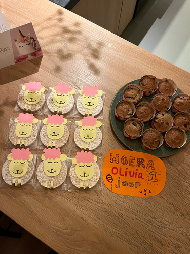 Rijstwafel schaapjes en baby proof bosbes cupcakes