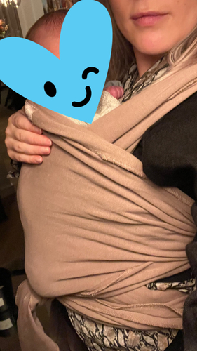 Ik gebruik nu een rekbare draagdoek voor onze newborn, die past altijd. En ...