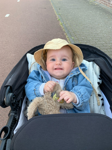 Ik heb een jasje van Little Dutch (in groen en in blauw). Stof is net als een vest, capuchon handig tegen regen of zon. Kosten nu ook bijna niks zie ik. https://www.little-dutch.com/nl/sale-laatste-kans-reversible-babyjasje-sailors-bay-blue-50-56