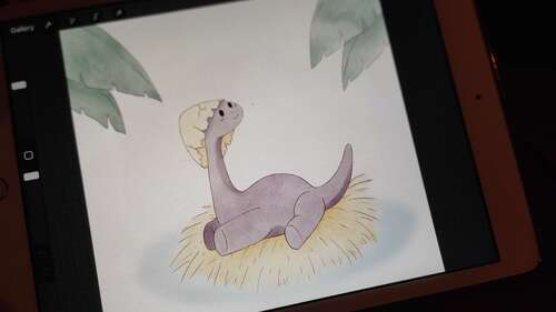 Een paarse dino, omdat het kamertje paars wordt en dino thema