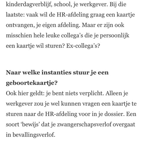 Duidelijk antwoord gevonden via Google, door in te typen, ben ik verplicht een geboortekaartje te sturen naar mijn werkgever?.