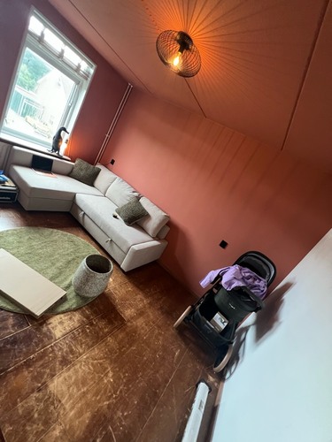 We doen de muren beige of taupe , 1 kleur.