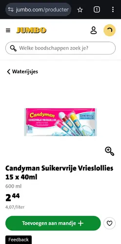 Suikervrije vrieslollies met zoetstoffen, gepasteuriseerd; om thuis in te vriezen*. *Minimaal 24 uur in de vriezer