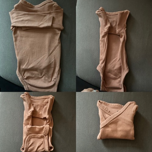 Smaller bedoel ik de mouwtjes eerst over elkaar, dan de zijkantjes een beetje naar binnen en dan het onderste deel met de knoopjes eerst naar binnen vouwen en dan het deel met de mouwtjes daar overheen (in mn hoofd is dit logisch)
