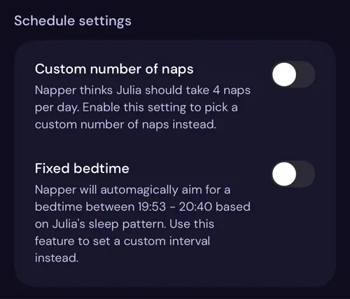 Wij volgen inderdaad ons dochtertje volledig en vullen het dan in in de app omdat we zo getobt hebben met onze dochter & slapen & voeden, om zo meer inzicht te krijgen. De dutjestijden komen niet altijd overeen, maar bedtijd vrijwel altijd.