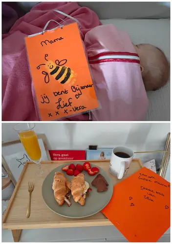 Wat lieff we moesten er helaas vroeg uit voor de voeding dus snel terug gekropen nu voor een ontbijtje op bed (is in de maak)