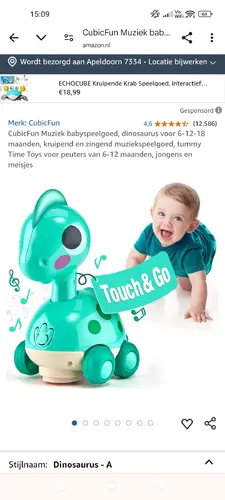 Babygym is hier echt een nega succes en we hebben een soort robotje, lijkt op de walking crab, maar dan een beetje in de vorm van wall-e met allemaal kleurtjes. Liedjes en verschillende niveaus zodat je hem tot 1/1,5 kan gebruiken