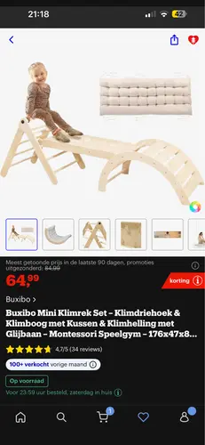 Heb voor me zoontje ook het gehaald voor zijn eerste verjaardag. En hij vind het geweldig vooral het klimmen. En de glijbaan als je het omdraait kan het ook veranderen in een klimgedeelte met gripstukken erop ik dacht dat die het niet zou begrijpen maar zag ineens dat die opeens helemaal omhoog was geklommen. Persoonlijk zou ik wel een dikke tapijt eronder zetten voor als die valt. Moet die zelf ook nog gaan aanschaffen:)