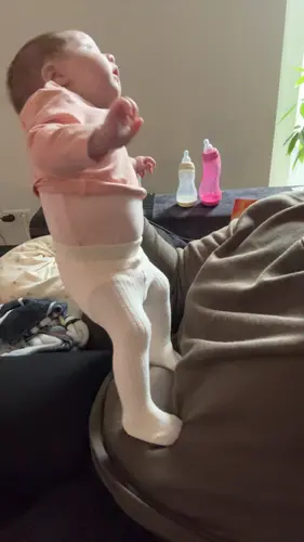 Is het normaal dat een baby van 9,5 week de hele tijd probeert te staan bij mij 馃槀, ze heeft hier maar 1 hand ondersteuning van mij en blijft dat gewoon een paar seconden zo staan kijken en dat doet ze meerdere keren per dag hahah