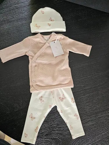 We hebben al genoeg kleding voor de eerste fase, maar het eerste pakje hebben we helaas nog niet.