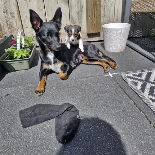 Ik doe gezellig mee in alle onzekerheid. Mijn lieve hond bella met haar pup lola. 🥰 bijden horen ze bij ons gezinntje